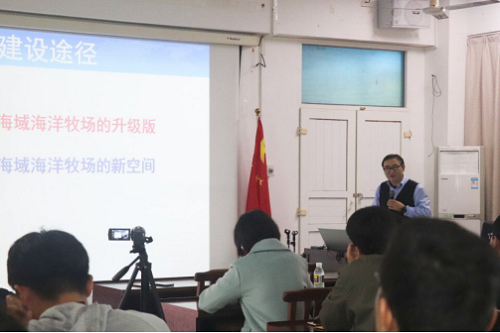 杨红生副所长报告的内容主要为:介绍海洋牧场的现状、简述长期存在而没有得到很好解决的问题,并针对以上问题提出了一些专业的解决方案,报告着重介绍如何发展海南特色的海洋牧场建设以及发展过程中应注重生态优先的原则。杨老师的演讲深入浅出,专业而不失幽默,在讲座结尾,同学们抓住难得的机会向杨老师请教海洋牧场建设相关问题,现场气氛十分活跃。