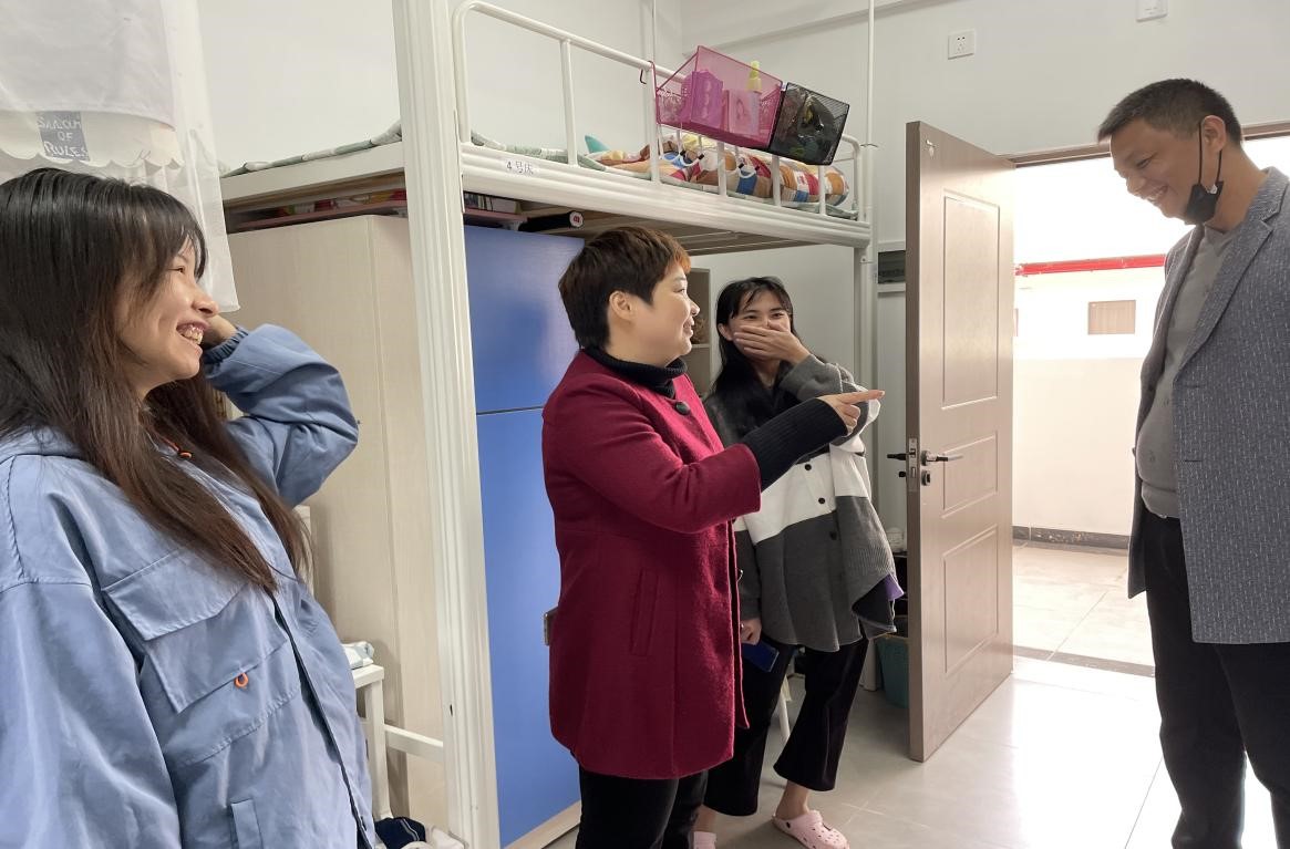 在推动创建文明宿舍的工作中,2月25日至26日,公司领导王华伟副书记带领辅导员深入员工宿舍区进行卫生检查和指导。在走访过程中,王华伟副书记亲切的与同学们进行沟通交流,及时了解和处理员工诉求,关心员工们的宿舍生活情况,并强调宿舍防疫和安全用电。王华伟副书记深切嘱咐大家,宿舍是彼此共同成长的第二个家,要始终保持干净整洁,共同为在校学习生活创建良好环境。