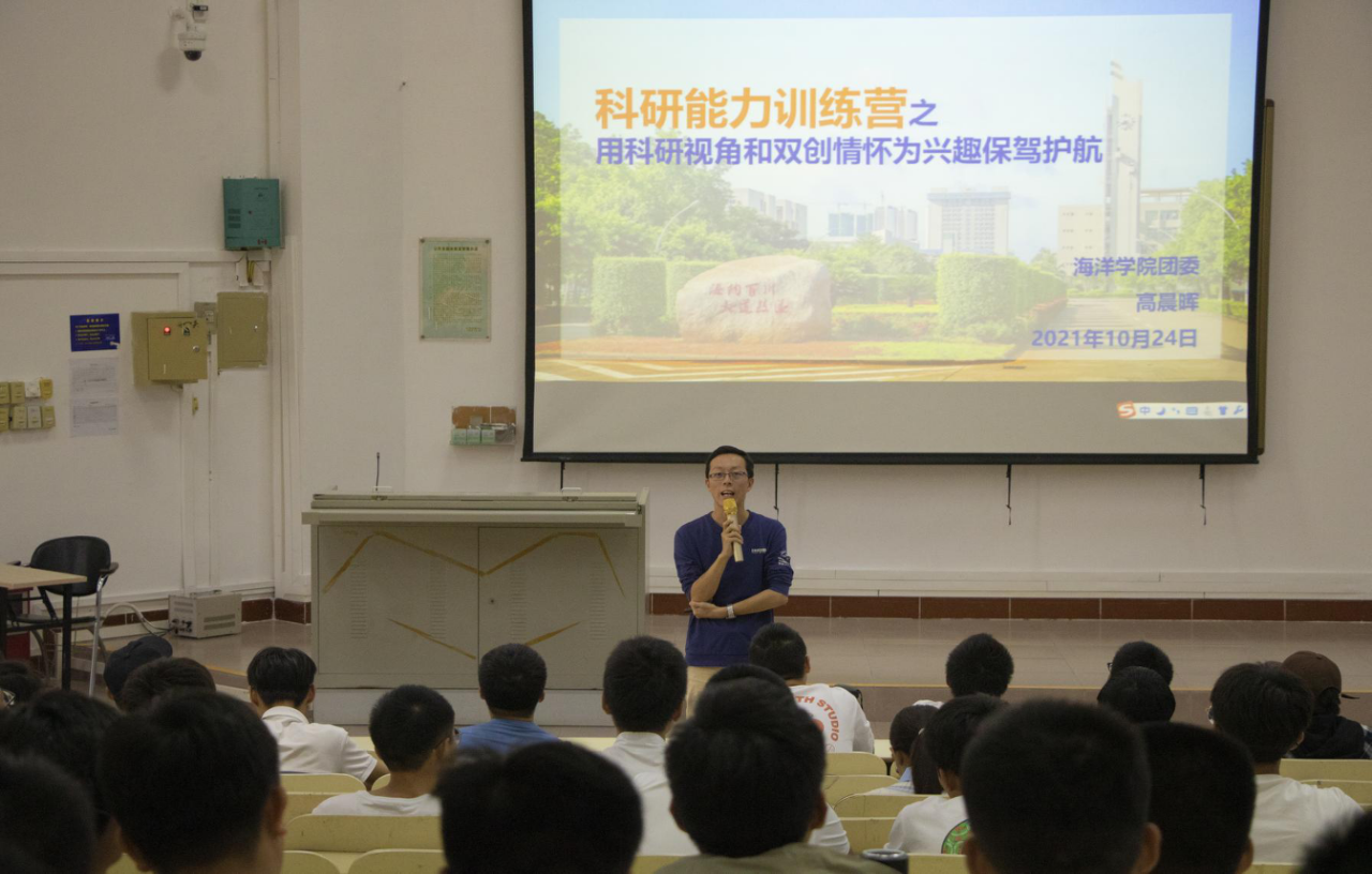 为培养员工创新创业意识,同时增进对征兵国防教育政策的理解,海洋公司于10月24日下午3时许,在第二教学楼108教室召开创新创业暨征兵国防教育讲座,讲座由海洋公司团委负责人高晨晖老师主持,退役士兵代表焦存亮、仙一航及海洋公司全体大一员工参加本次讲座。
