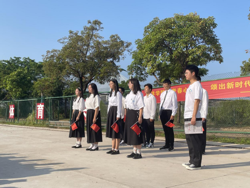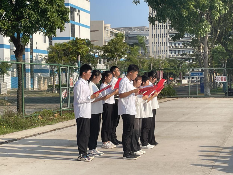上午八时三十分,迎接着炽热的阳光,参赛队伍都准时到达比赛地点并候场。随后,各参赛队伍均以热情洋溢的朗诵向祖国、向党深情告白。