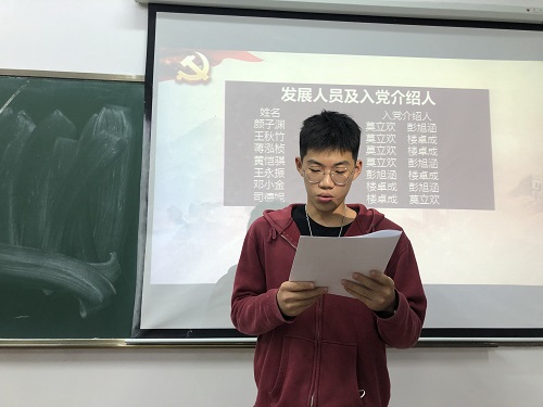 其次,由颜子渊等七位同志宣读入党志愿书,经各自入党介绍人介绍其思想、学习、工作、生活方面的情况和党员评议后,支部党员一致认为颜子渊等七名同志已基本具备党员的条件,同意吸收为预备党员。