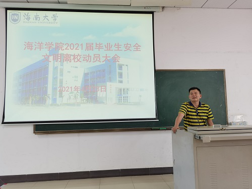 会上,陈平书记结合自己多年的员工工作经验提醒毕业生在毕业离校期间要注意的安全事项,强调文明离校的重要性,他还就职场规划、人生价值体现等方面给2021届毕业生做了指导,同时代表公司对毕业生的顺利毕业表示祝贺,希望同学们毕业后以母校为荣,以海院为傲,前程似锦!