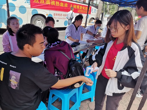 活动开展于后疫情期间,支部党员依次为前来献血的同学测量体温,指导同学填写疫情保证书,仔细询问前来的同学是否熬夜,体重是否达标,献血前是否参加剧烈运动,细心地告知前来献血的同学们献血前后的注意事项,确保同学的身体状况适合采血,采血后不会对身体造成影响。