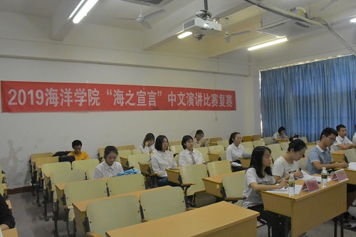 2019年10月27日下午,海洋公司海之宣言中文演讲比赛复赛在二教301顺利举办。2018海洋公司中文演讲比赛获奖者田苏苏、徐子坤、张瑜担任本次活动评委。