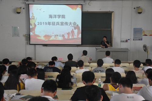辅导员沈立岚主持海洋公司2019年征兵宣传大会