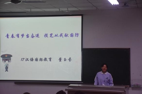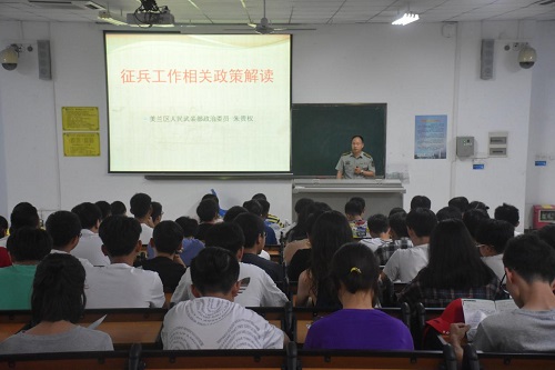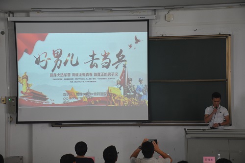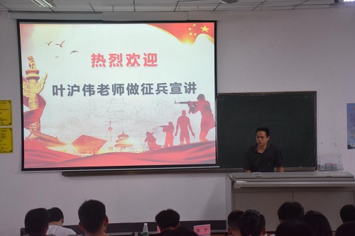 校保卫处军事科科长叶泸伟做征兵宣讲