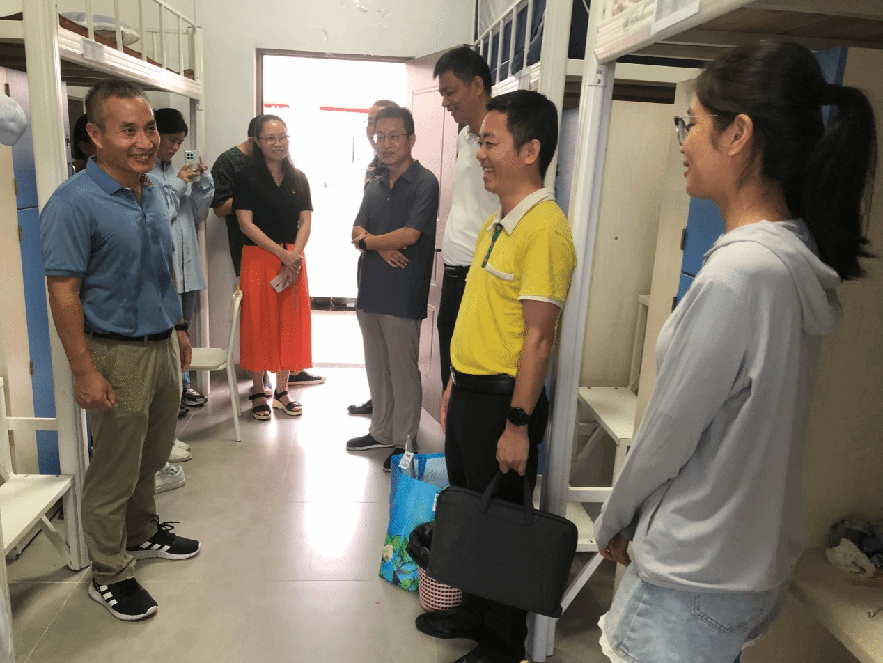 金秋九月,2023级新生满怀着憧憬与希望来到bb贝博艾弗森官方网站海洋生物与水产,开启自己全新的旅程。为了深入了解新生的情况,解决新生入学过程中的各种问题,帮助新生尽快适应校园生活。2023年9月9日下午,公司党总支书记王林桂、经理谢松光、副经理骆剑、副经理路延笃与凤翔书公司党委书记王华伟、正处级辅导员梁丽仪、辅导员卢茜、腾跃以及员工干部一道前往员工宿舍看望慰问2023级新生。