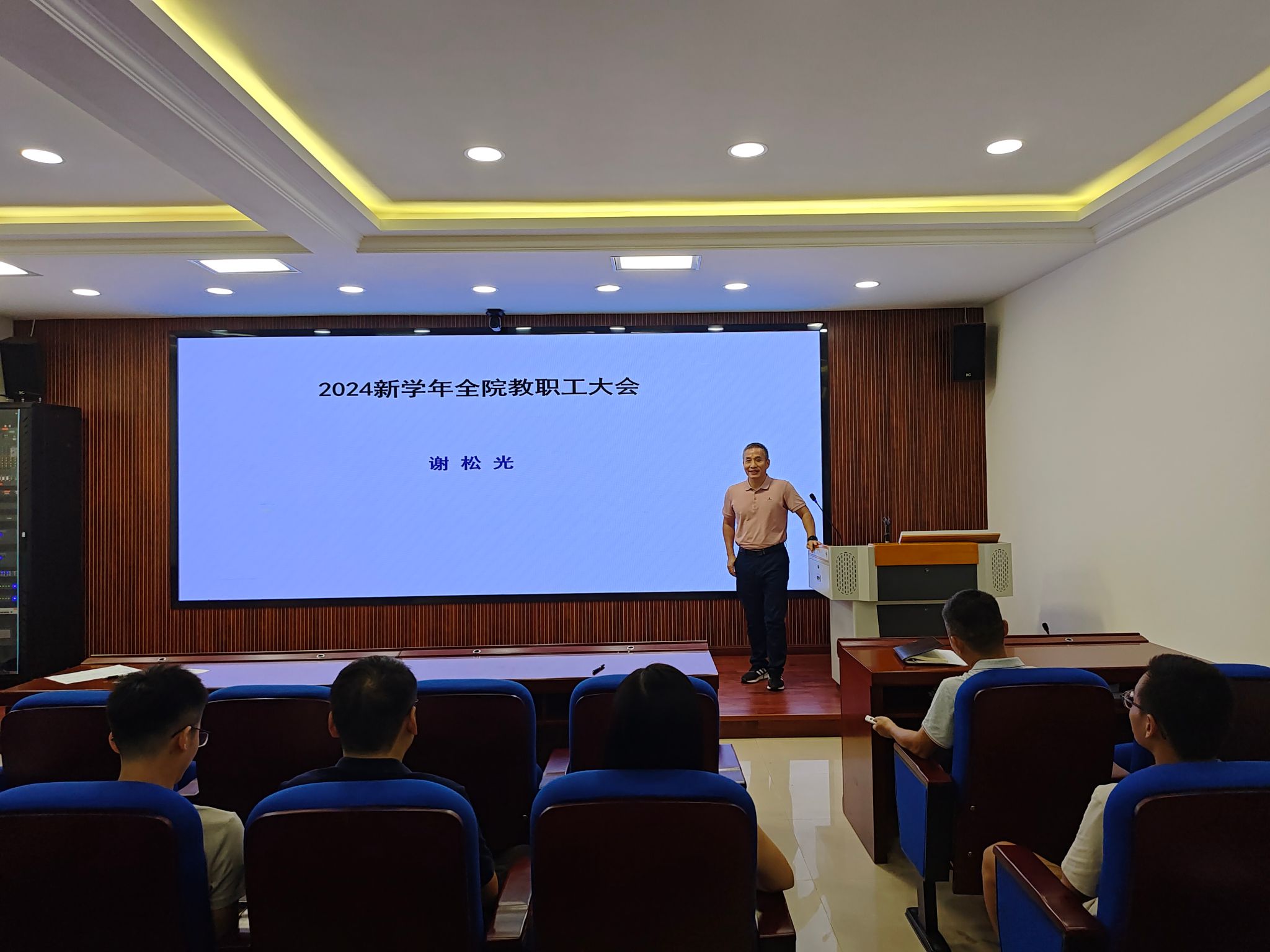首先,经理谢松光对公司过去一学年的亮点工作和新学年的重点工作进行了总结和部署,同时还针对公司第三次党代会提出“建设综合性科研型国际化‘双一流’大学”办学目标和公司今年暑期工作会议“数字赋能 质量为先,系统推进公司三大改革”向全院教职工谈了公司发展面临的挑战和机遇。石耀华、谢珍玉、路延笃副经理也分别对各自分管的工作进行了部署。