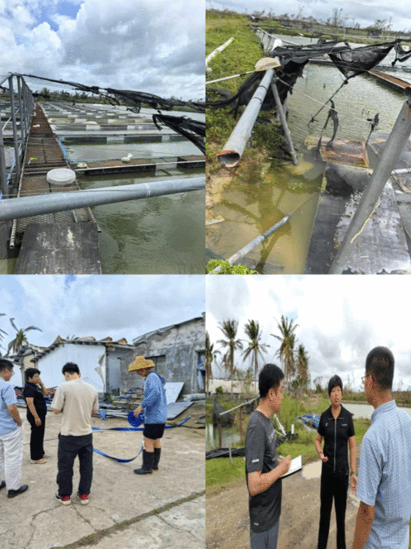 ballbet贝博官方网站积极响应省委省政府和文昌市农业农村局号召,在海南省水产科技特派团办公室的指导下迅速行动起来,第一时间组成了4支志愿服务队,于2024年9月9 -18日期间奔赴文昌市会文镇、抱罗镇、铺前镇、锦山镇、东郊镇、龙楼镇、昌洒镇、翁田镇、冯坡镇等9个乡镇,对养殖石斑鱼、对虾、东风螺、罗非鱼和海马等企业和养殖户的损失进行评估,了解他们的需求,指导企业和养殖户对死鱼死虾死螺等生物无害化处理,防止灾后疫病发生,同时还为企业和养殖户制定科学合理的工作方案,帮助企业和养殖户尽快恢复生产。