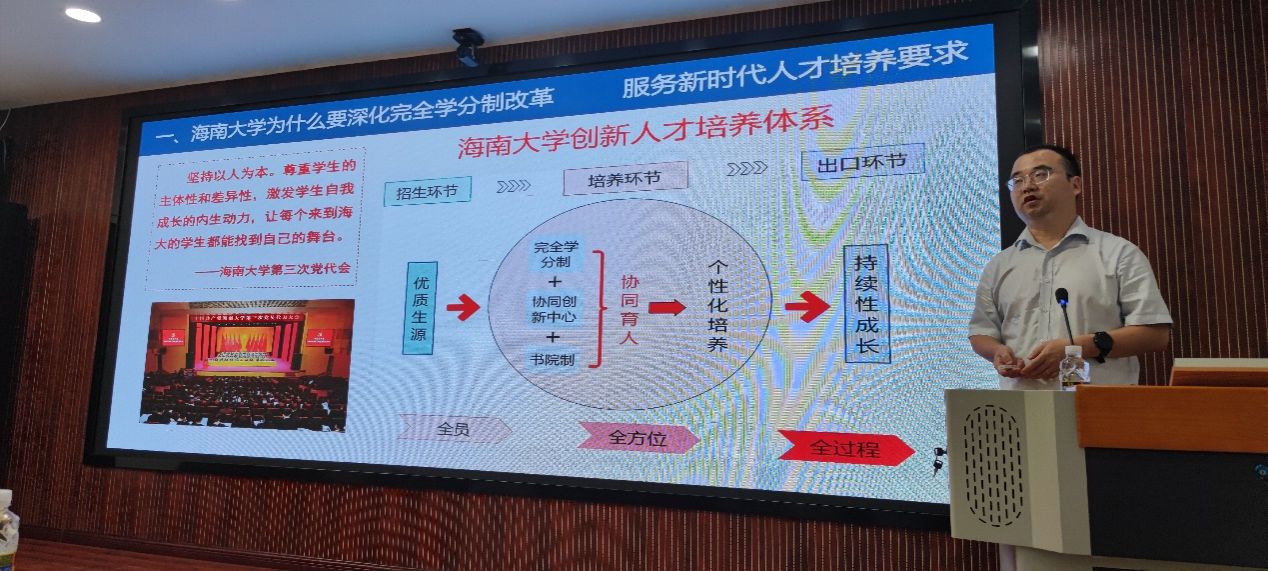 宣讲会上,耿刚副处长从bb贝博艾弗森官方网站为什么要深化完全学分制改革、bb贝博艾弗森官方网站完全学分制改革历程、深化完全学分制改革政策及应用场景等方面进行了全面阐述和详细解读。他指出,完全学分制改革坚持以人为本,尊重员工的主体性和差异性。通过修订人才培养方案、深化学业评价体系改革、创新教学模式、推进教育数字化建设等,给予本科员工四年中七次自主选择专业的机会,以此激发员工自我成长的内生动力,让每个来到海大的员工都能找到自己的舞台。答疑环节,老师们积极提问,耿刚副处长给予逐一解答 。
