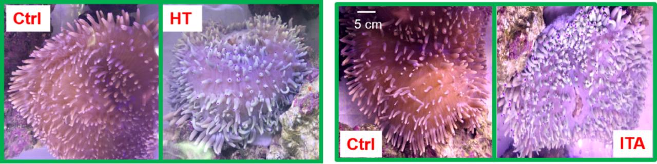 图. 高温(HT)和甾体饥饿(ITA)引发的紫点海葵白化对比