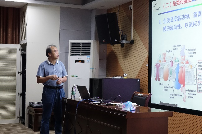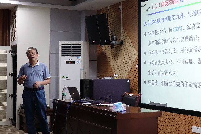 2021年10月31日,华南农业大学博士生导师李远友教授受邀来公司作学术报告,学术报告会由吴小易教授主持。李远友教授此次学术报告的题目为“基于卵形鲳鲹必需脂肪酸需求特性的高效低鱼粉配合饲料研发”,李教授重点阐述了在卵形鲳鲹必需脂肪酸的需求基础上,通过开发并向饲料中添加金鲳复合油来降低商品饲料中鱼粉的添加量,在改善金鲳鱼体健康及品质的同时降低饲料成本。该研究提出从必需脂肪酸平衡角度来研发低鱼粉配合饲料的观点,为鱼粉替代技术研发提供了一个新的思路。