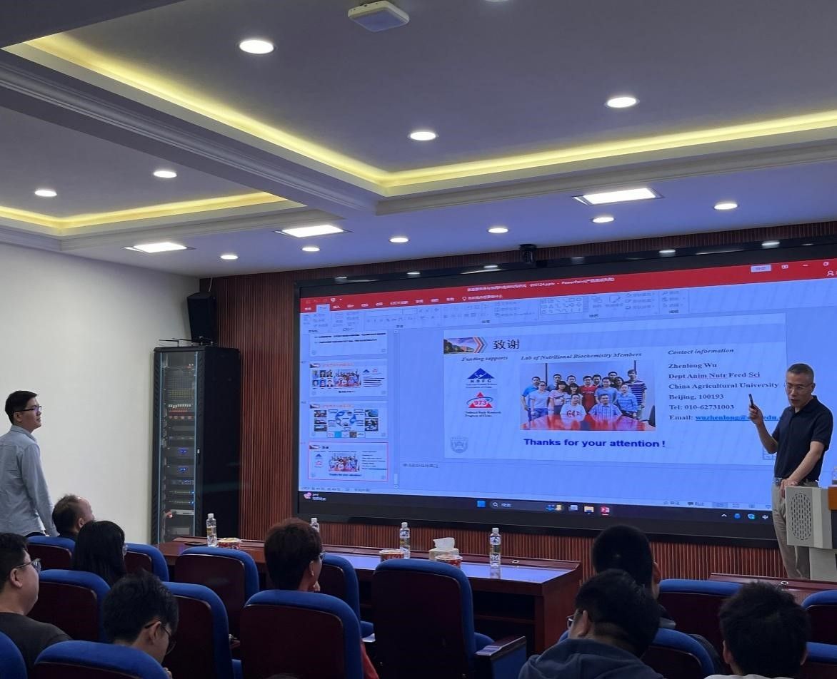 武振龙教授报告的题目为《氨基酸营养与猪饲料蛋白质高效利用》。他深入解析了猪饲料不同蛋白质利用效率和功能性非必需氨基酸对肠道健康的影响,分析了甘氨酸对肠道菌群结构的改善作用,提出了功能性氨基酸可能是婴幼儿配方食品、特医食品的重要研发方向。该研究成果不仅为畜牧业界提供了科学的指导,同时也为学术界和工业界之间的交流架设了桥梁,推动了畜牧科学研究和生产实践的深入发展。
