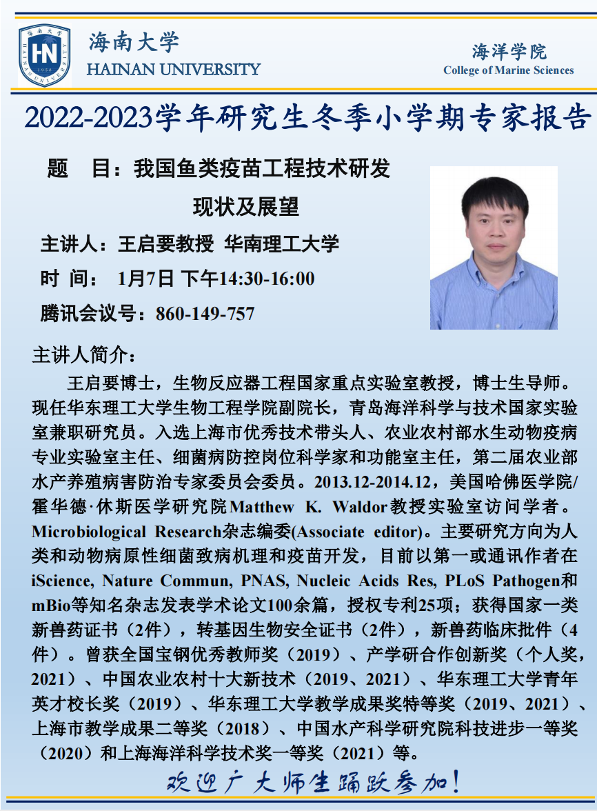 2022-2023学年研究生冬季小学期专家报告--王启要教授